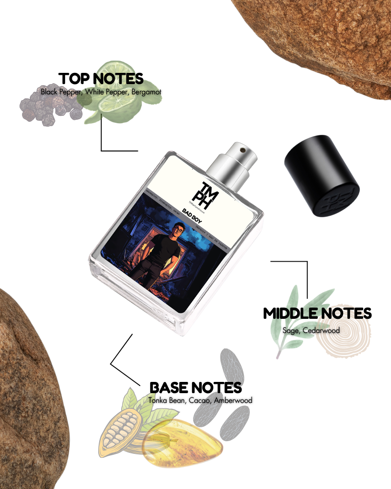 Bad Boy strikes with electrifying notes of black and white pepper, contrasted by the richness of cacao and tonka bean. Layered over warm cedar and amber, it creates a fragrance that is both rebellious and sophisticated. Powerful yet refined, Bad Boy represents confidence, duality, and the allure of modern masculinity.