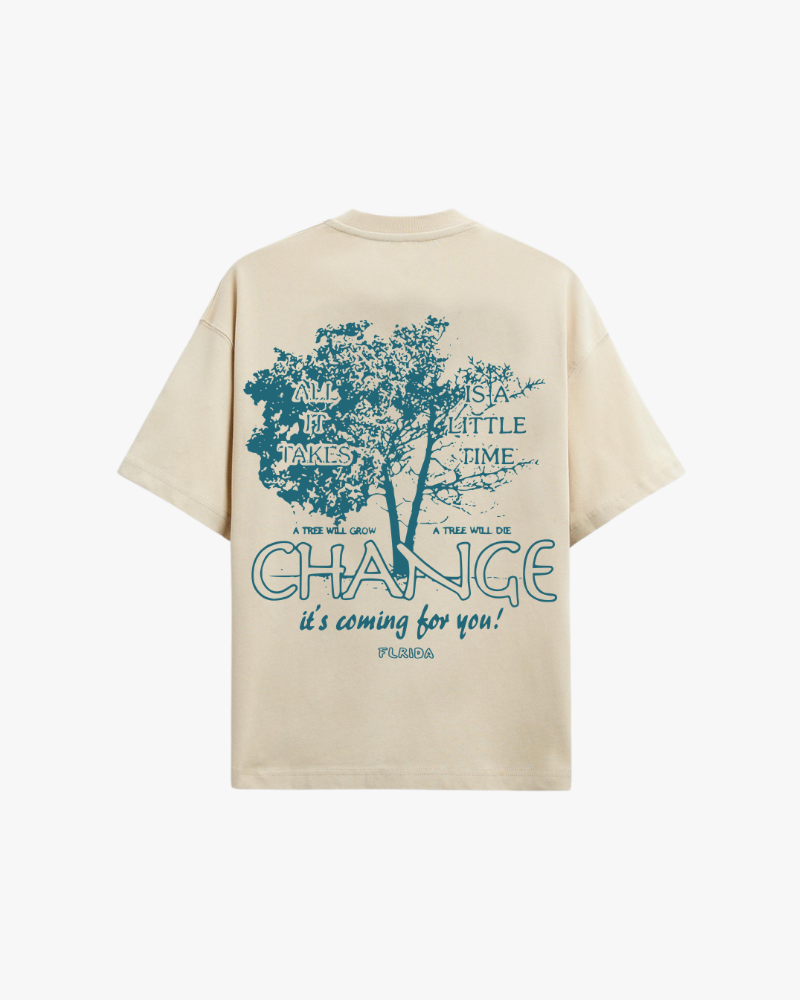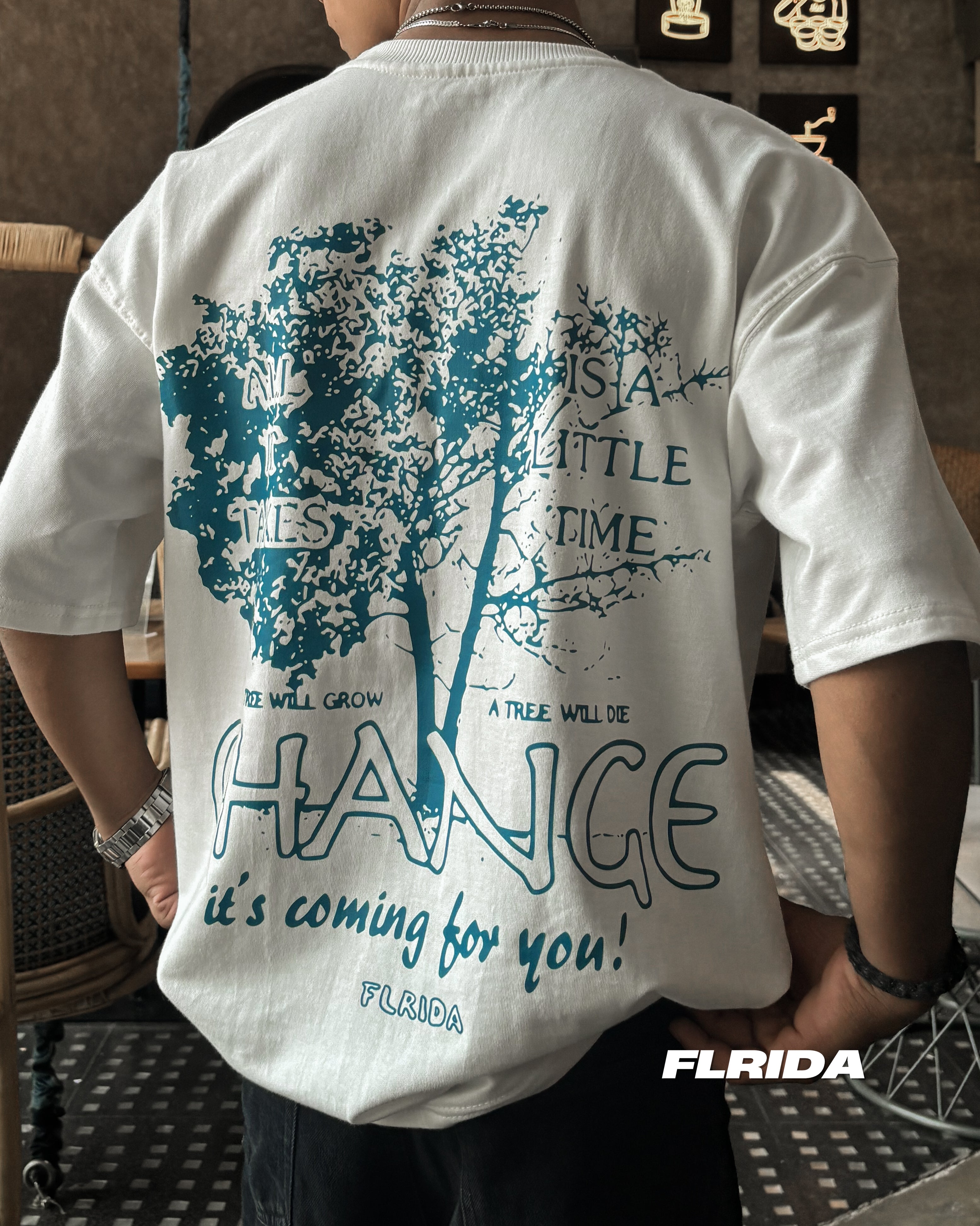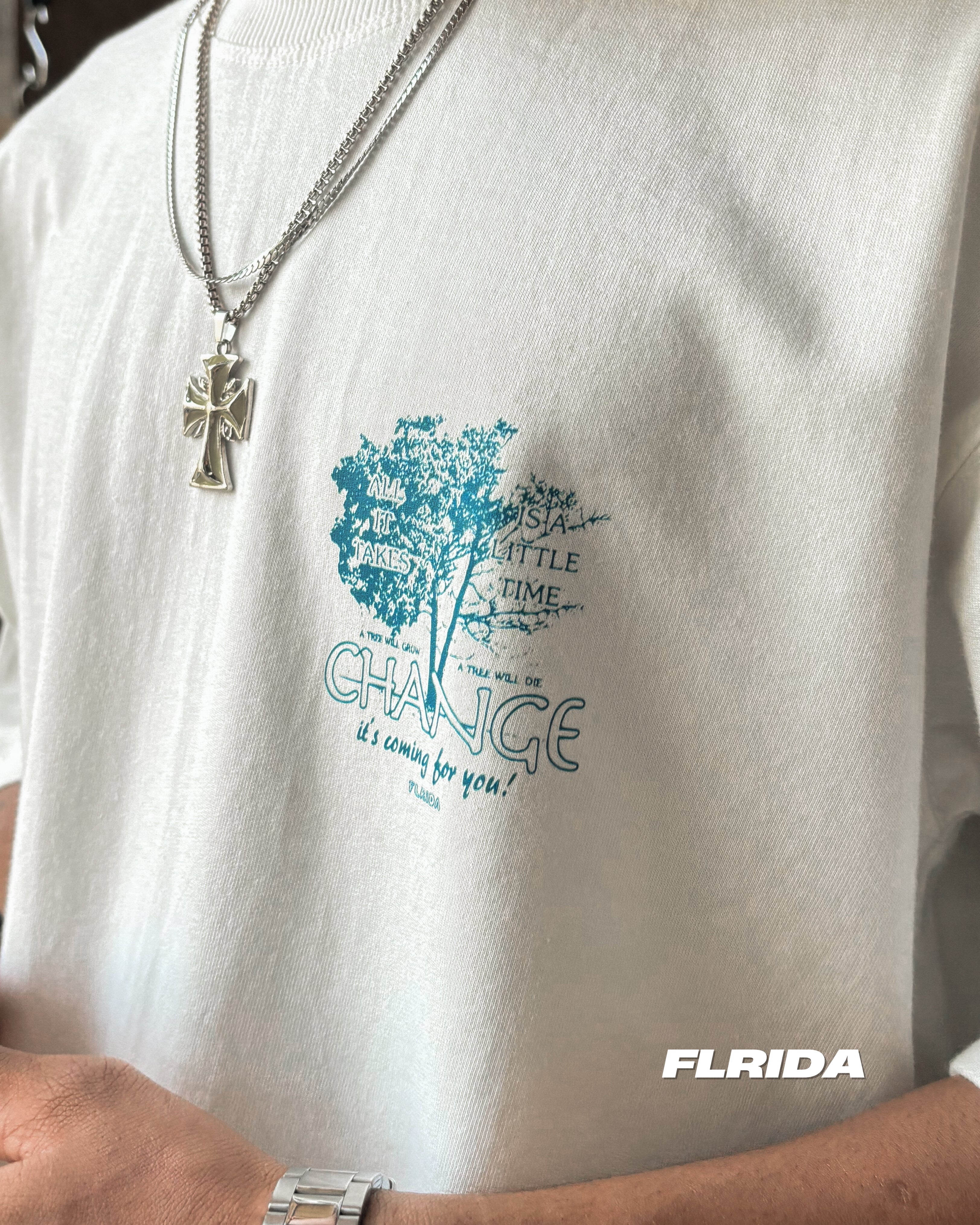 The FLRIDA “Change” Tee from the Free Your Energy collection is a reminder that nothing stays still — growth and loss are both part of the process. Crafted from 220 GSM premium French Terry cotton in a heavyweight oversized fit, it brings comfort with a meaningful edge. The back features a striking tree graphic layered with text that reads: “All it takes is a little time. A tree will grow. A tree will die. CHANGE — it’s coming for you.”