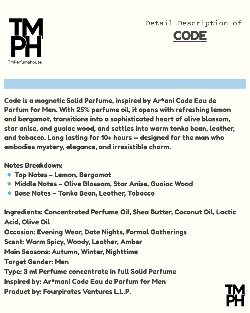 Ombre Nomade is a deep and mysterious Solid Perfume, inspired by L*uis Vuitton Ombre Nomade. With 25% perfume oil, it unveils an intense oud accord enriched with smoky benzoin and raspberry’s subtle sweetness, layered over warm amberwood. Long lasting for 10+ hours — crafted for those who desire luxury, power, and unforgettable presence.