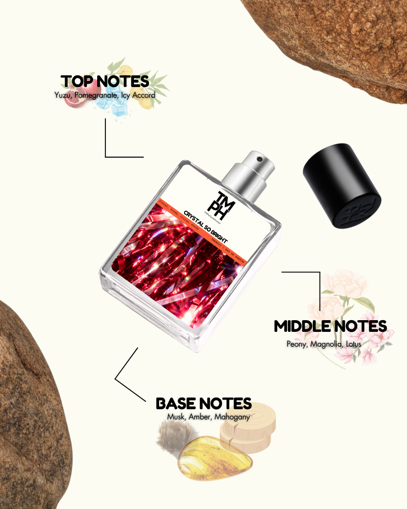 Crystal So Bright opens with vibrant pomegranate and yuzu, balanced by delicate peony, magnolia, and lotus blossoms. Wrapped in warm amber and sensual musk, it creates a fragrance that feels radiant and feminine. Both refreshing and graceful, Crystal So Bright embodies sophistication, charm, and timeless beauty in every sparkling note.