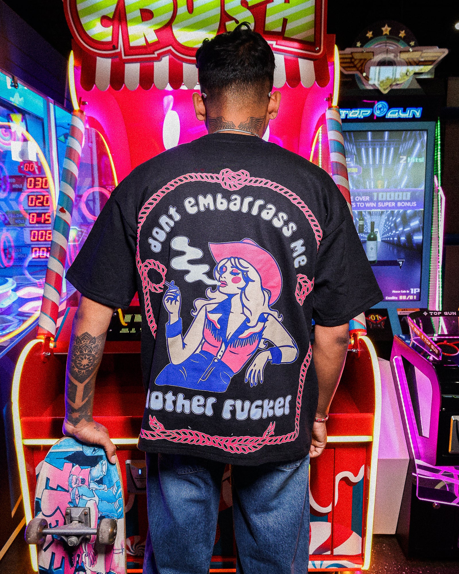 Bold, fearless, and unapologetically stylish this oversized tee is built for those who don’t follow the rules, they make them. Crafted from premium 220 GSM French Terry cotton, it offers a luxe feel with street-ready durability. The striking artwork on the back adds a rebellious edge, making it the perfect statement piece for anyone who wants their outfit to speak louder than words.