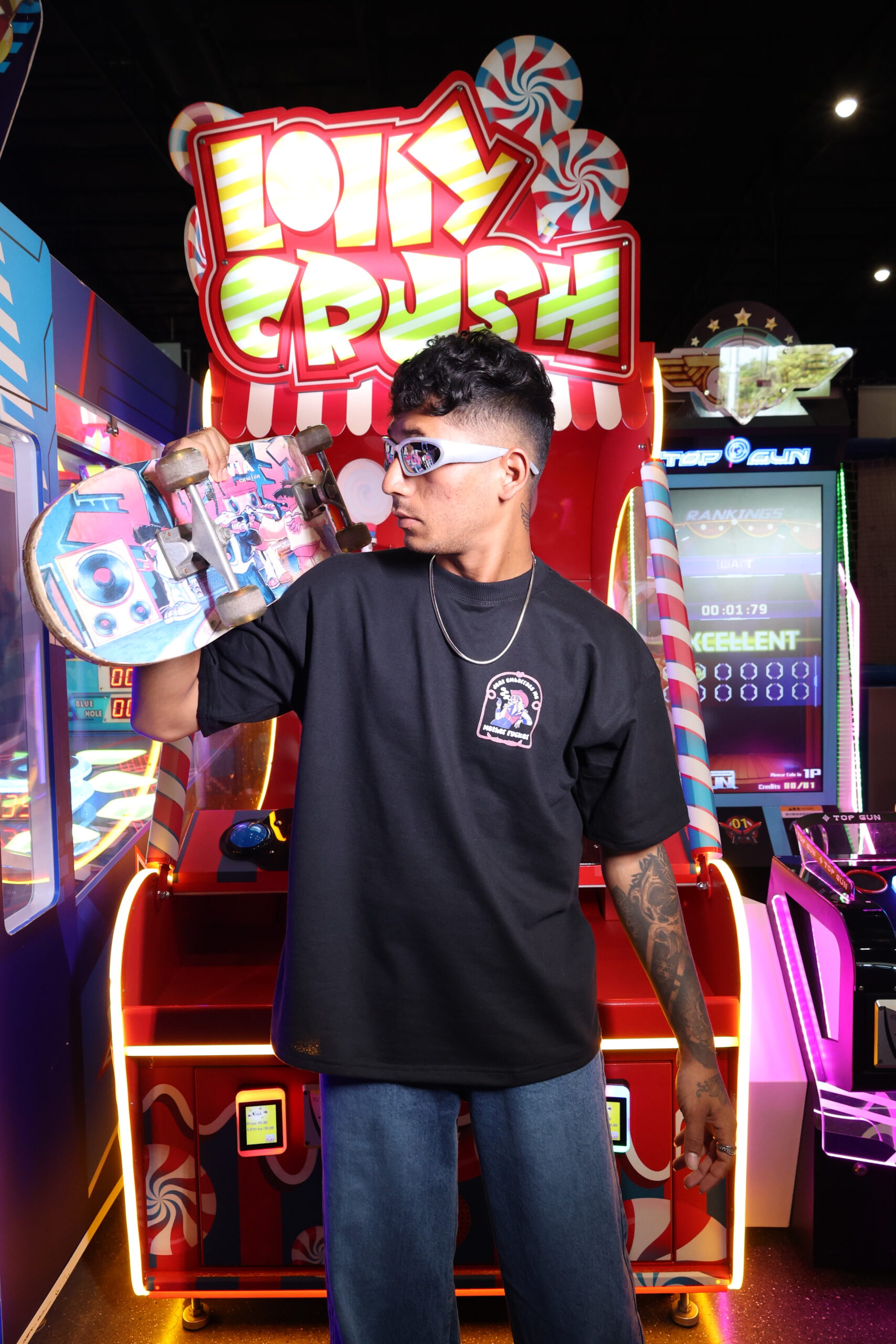 Bold, fearless, and unapologetically stylish this oversized tee is built for those who don’t follow the rules, they make them. Crafted from premium 220 GSM French Terry cotton, it offers a luxe feel with street-ready durability. The striking artwork on the back adds a rebellious edge, making it the perfect statement piece for anyone who wants their outfit to speak louder than words.