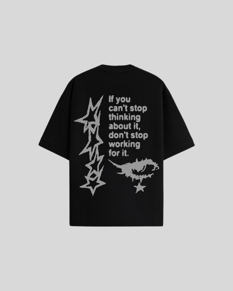 Ambitious, driven, and relentless — this oversized tee is made for those who chase their dreams with everything they’ve got. Crafted from premium 220 GSM French Terry cotton, it balances comfort with durability, making it a staple for everyday wear. The standout back print features a powerful motivational quote alongside striking star graphics, giving it an edge that speaks to ambition and individuality. Whether on the streets or in the studio, this piece keeps your mindset and your style sharp.