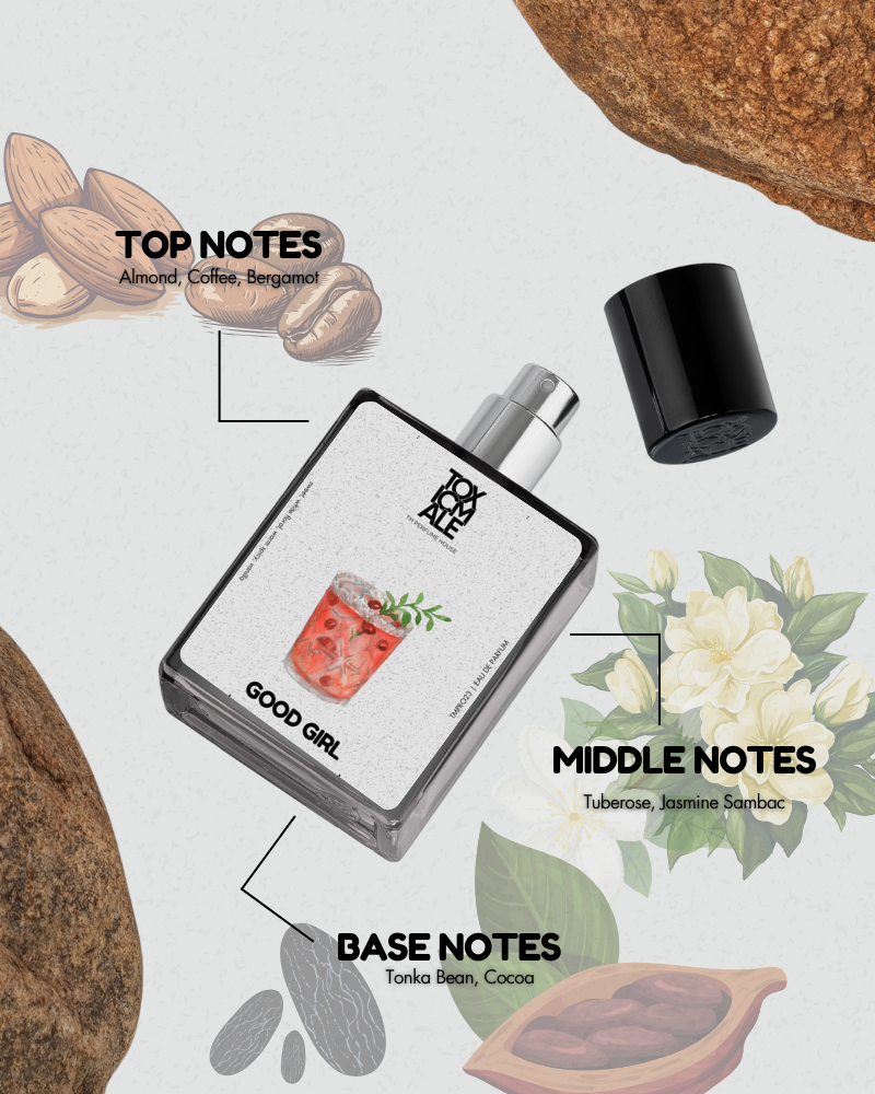 Base notes – Tonka Bean, Cacao, Vanilla, Praline, Sandalwood, Musk, Amber, Cashmere Wood, Cinnamon, Patchouli, Cedar.