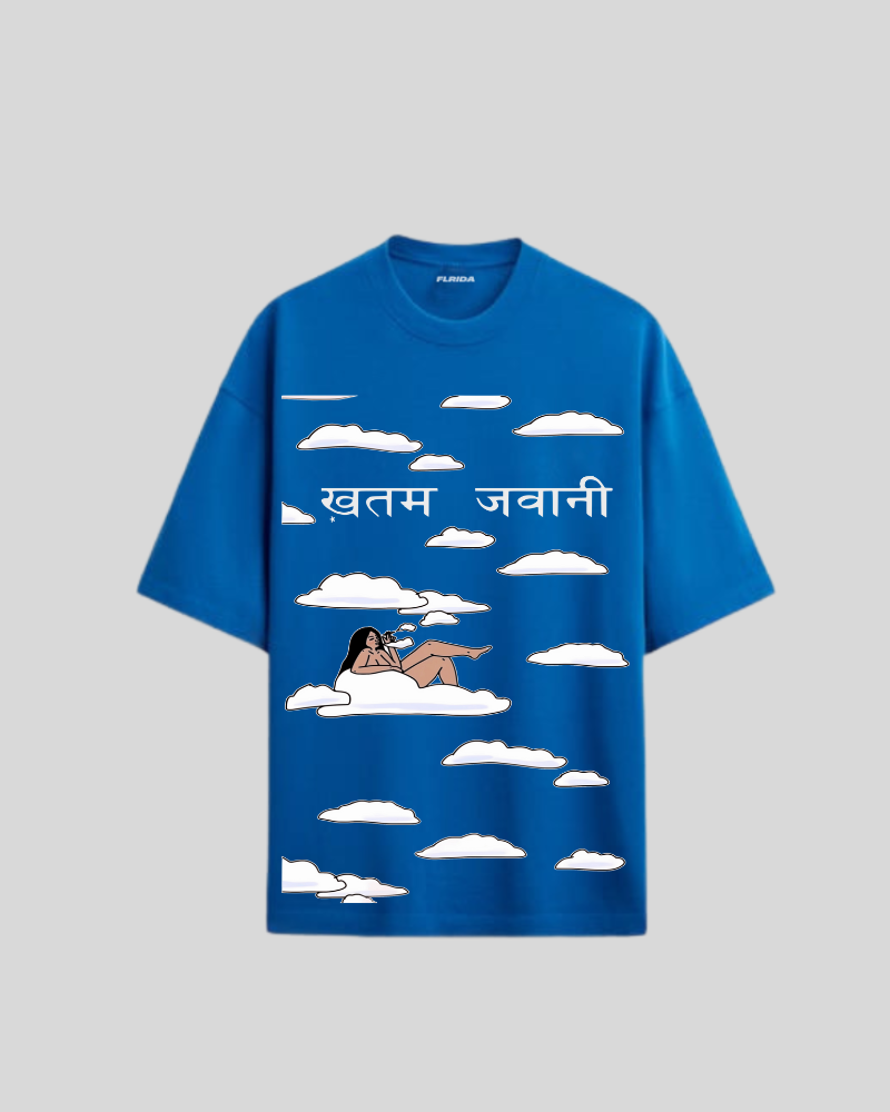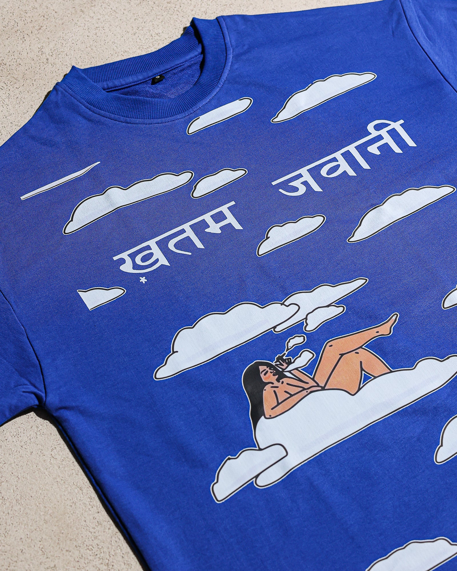 A mood in itself — this tee blends sarcasm with style. The “ख़त्म जवानी” print captures that effortless IDGAF energy while floating-in-the-clouds artwork keeps it playful and bold. Perfect for lazy days, late nights, and every moment you’re too cool to care.