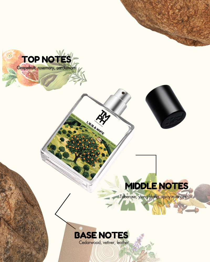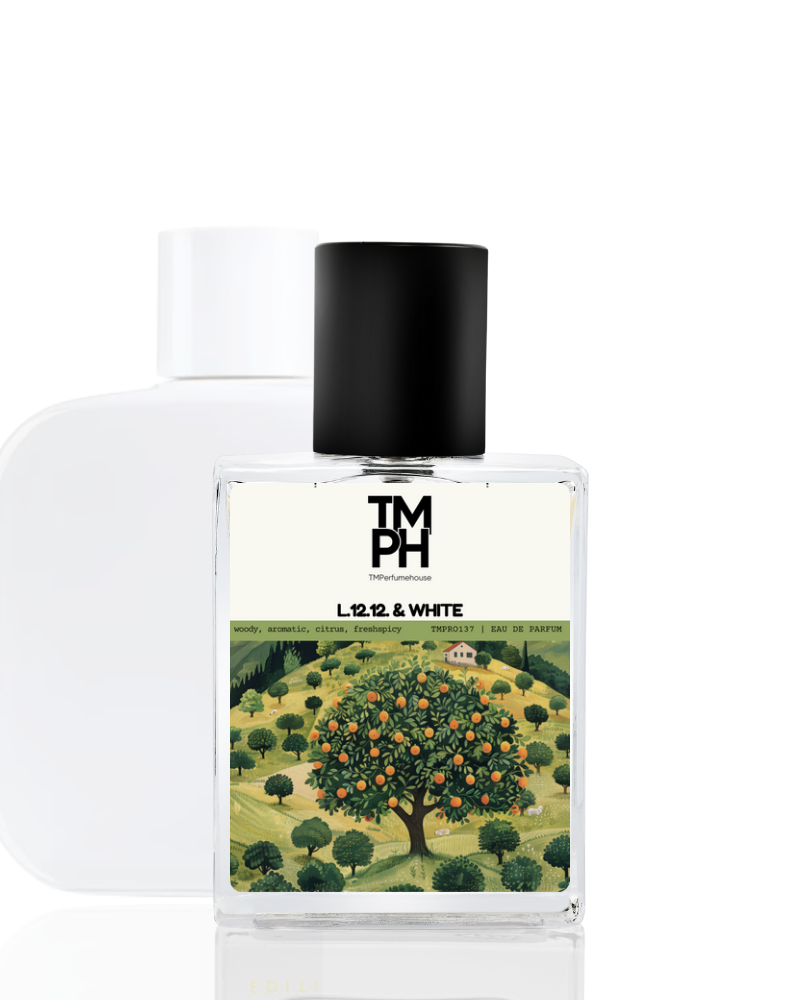 L.12.12. & white embodies effortless sophistication with a fresh and modern touch. It opens with bright grapefruit, rosemary, and cardamom, leading into a heart of tuberose and ylang-ylang for a subtle floral nuance. The base of cedarwood, suede, and vetiver adds warmth and masculinity, making it versatile, elegant, and refreshing.