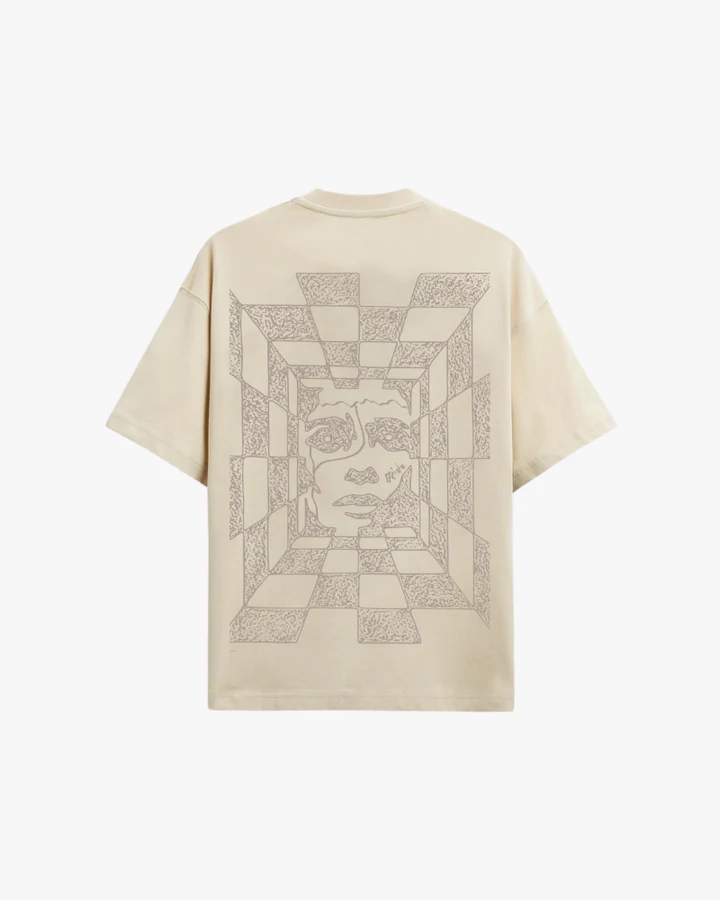 The FLRIDA “Hallucination” Tee from the Free Your Energy collection bends space and vision into art. Crafted from 220 GSM premium French Terry cotton in an oversized cut, this tee delivers heavyweight comfort while carrying a surreal back print: a face emerging from a warped checkerboard tunnel. A piece that’s as much a visual trip as it is streetwear.
