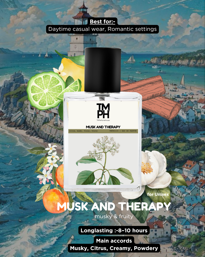 Musk and Therapy is a luminous and comforting fragrance designed to uplift and calm the senses. It opens with crisp bergamot and mandarin, unfolding into delicate notes of white magnolia and blackcurrant. At its core lies velvety white musk, wrapped in sandalwood, creating a serene, sensual aura of elegance and balance.