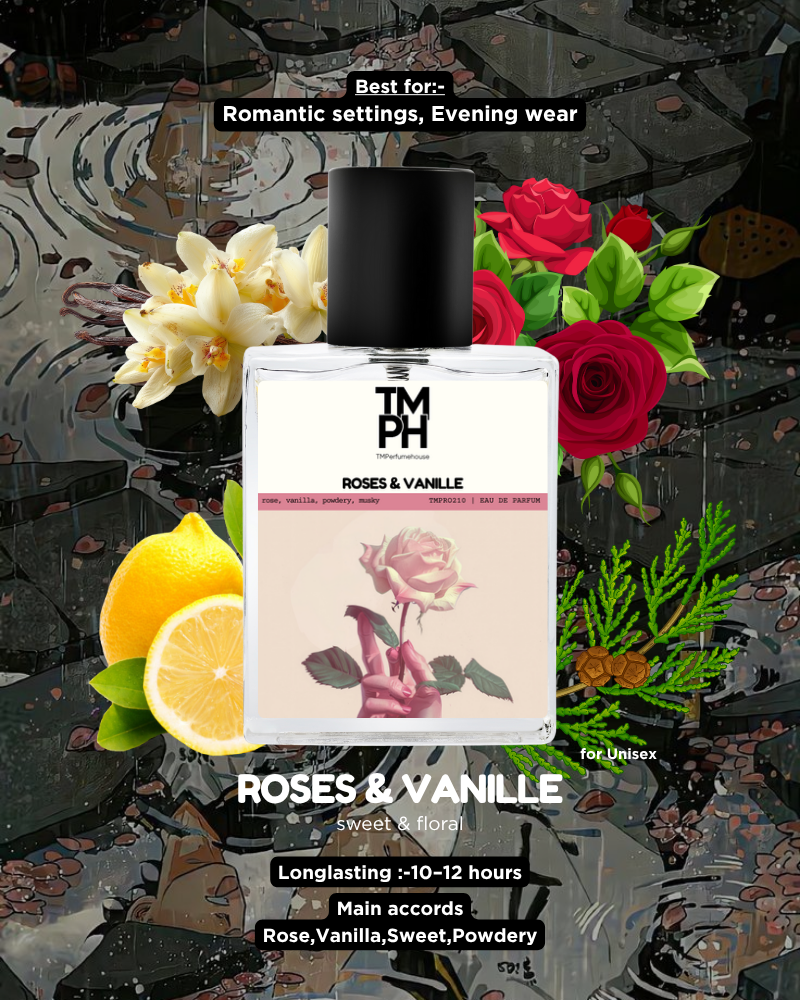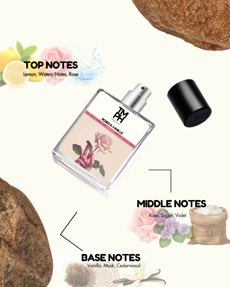 roses & vanille is a luxurious gourmand-floral scent that exudes warmth and charm. It opens with sparkling lemon and aquatic notes, leading into a heart of velvety rose for floral richness. The base of vanilla, white musk, and cedarwood adds sweetness and depth, creating a fragrance that is sensual, feminine, and unforgettable.