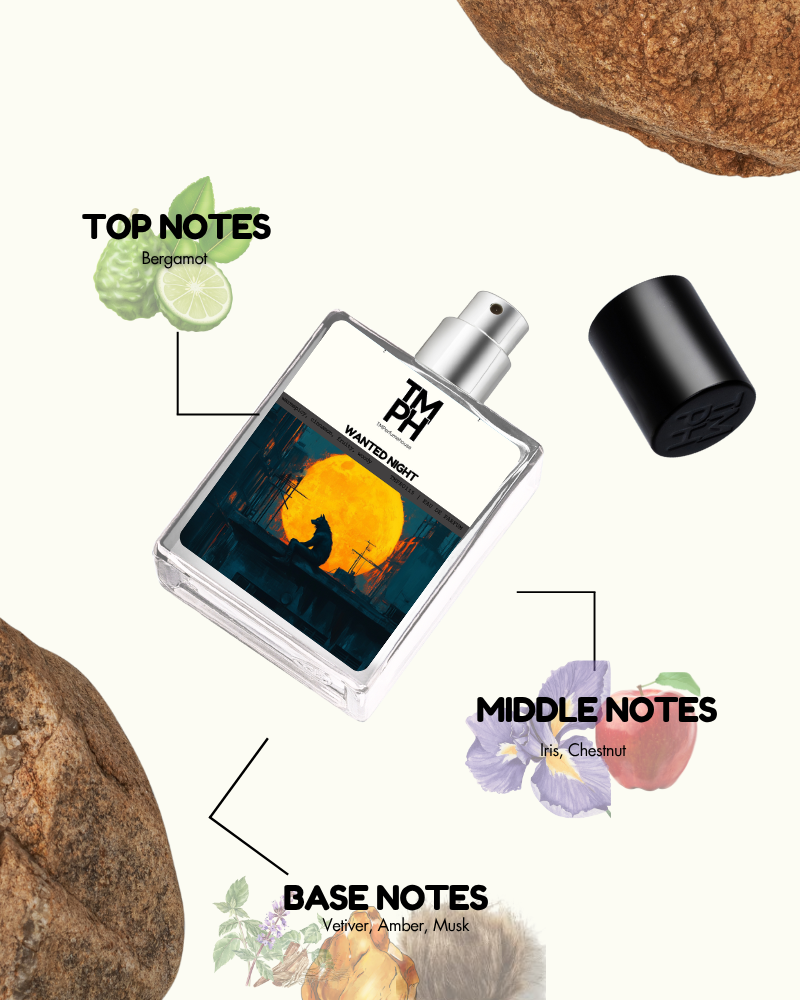 Wanted Night ignites with cinnamon and mandarin, flowing into a heart of tobacco, incense, and red cedar. Settling into warm cypress and leather, it feels powerful and magnetic. Intense yet refined, Wanted Night embodies confidence and allure, leaving a trail of mystery, passion, and unforgettable masculine sophistication.