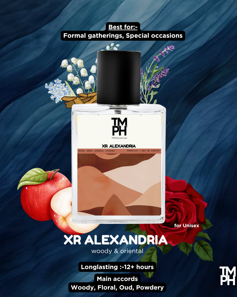 xr Alexandria is a refined and majestic fragrance inspired by oriental traditions. It opens with fresh lavender, cinnamon, and apple, leading into a heart of rosewood, cedar, and lily of the valley. The base reveals smooth amber, vanilla, musk, and Laotian oud, creating a sophisticated balance of warmth, richness, and lasting allure.